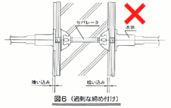 図7のように取付けた本体に乗って作業するとセパレーターに残留曲げ応力が発生します。又曲がり(